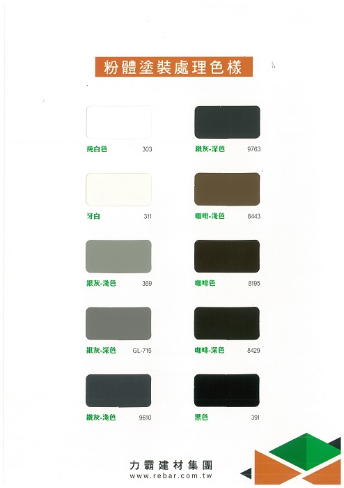 依客戶的喜好來調整顏色,光擇度分為亮光、平光、霧化、消光,甚至特殊的金屬粉體塗料以及一些特殊的皺紋塗料、(鋼)砂紋、粉體高耐候氟碳塗料。