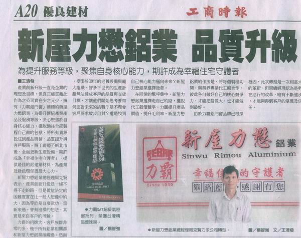 產業創新升級一直是企業的理想及目標,但真正能貫徹此作為之公司實在少之又少,擁有「力霸鋁門窗」商標的新屋力懋鋁業,為提升傳統產業產品及服務等級,決心聚焦於自身核心能力,擺脫過往全部製程自己做的包袱,將所有資源投注到產品研發、品質提昇與客戶服務。將工廠遷至新北市後,全面更新生產設備,期許以「幸福住宅守護者」,提供最佳的鋁建築材料,為產業及綠色環保盡最大心力。