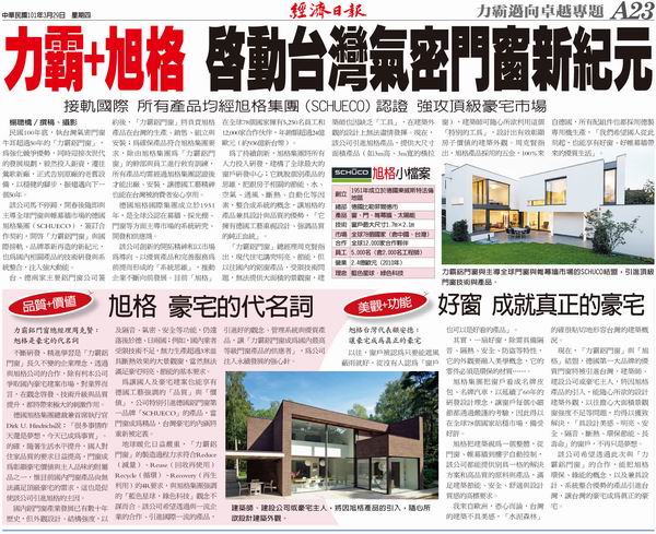 該公司馬不停蹄,開春後隨即與主導全球門窗與帷幕牆市場的德國旭格集團(SCHÜCO),簽訂合作契約,開啟「力霸鋁門窗」與國際接軌、品牌革新再造的新紀元,也為國內相關產品的技術研發與系統整合,注入強大動能。