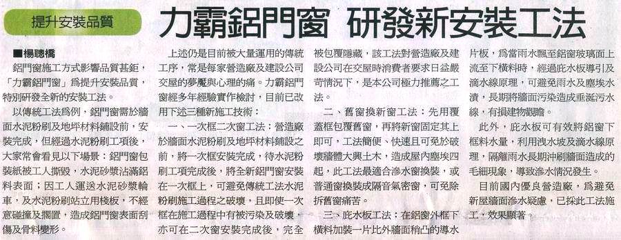 鋁門窗施工方式影響品質甚鉅,「力霸鋁門窗」為提升安裝品質,特別研發全新的安裝工法。